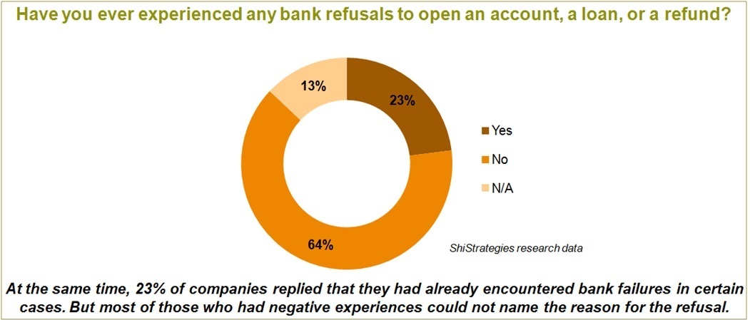 At the same time, 23% of companies replied that they had already encountered bank failures in certain cases. But most of those who had negative experiences could not name the reason for the refusal.